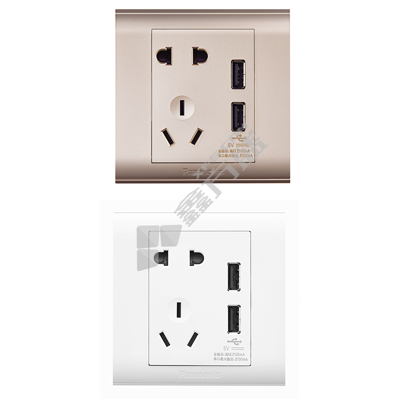 松下 铭适系列五孔带二位USB带保护门 WZE654Y 金色
