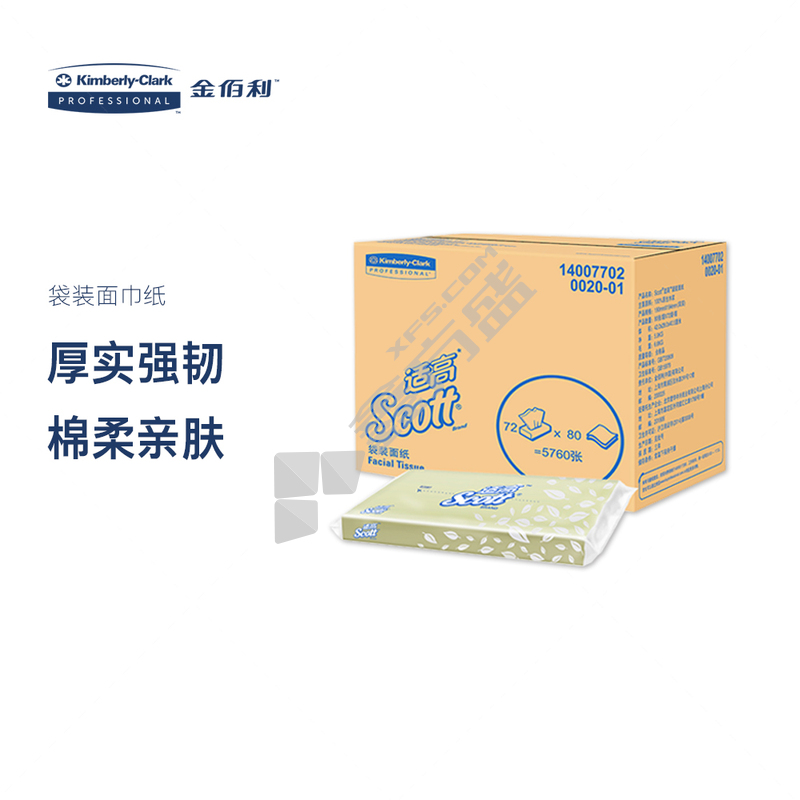 金佰利 面纸 2层 80抽 80张/盒 72盒/箱 0020-01 194*190mm