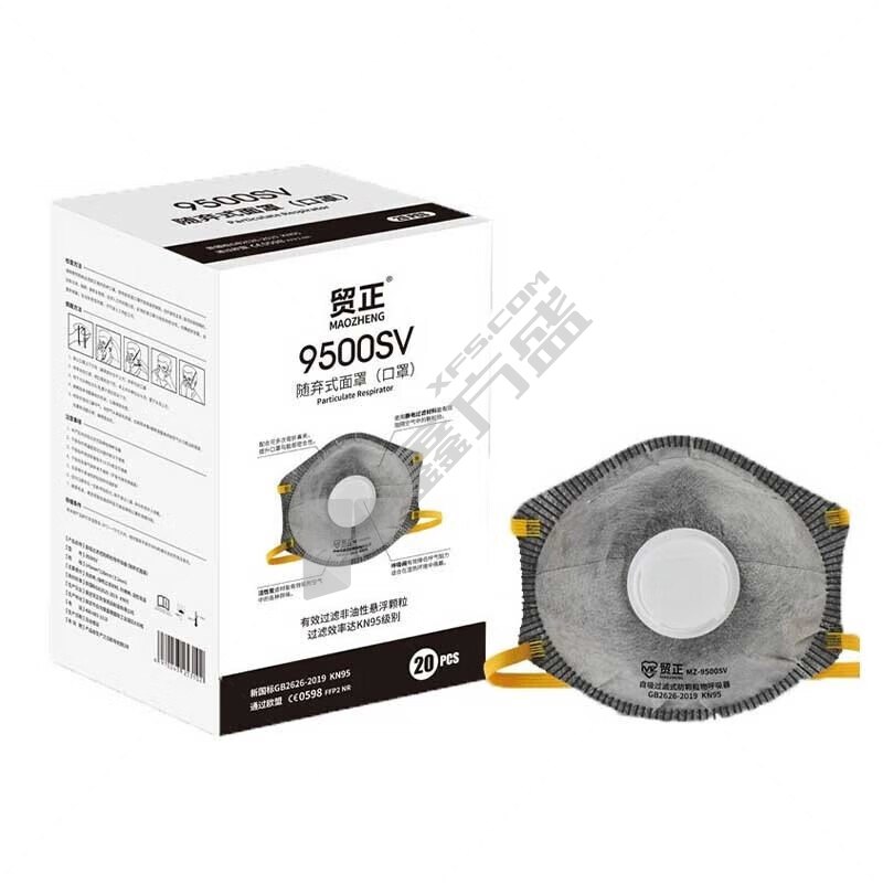 贸正 9500V 杯状KN95带阀防护口罩 白色 头戴式 20只/盒