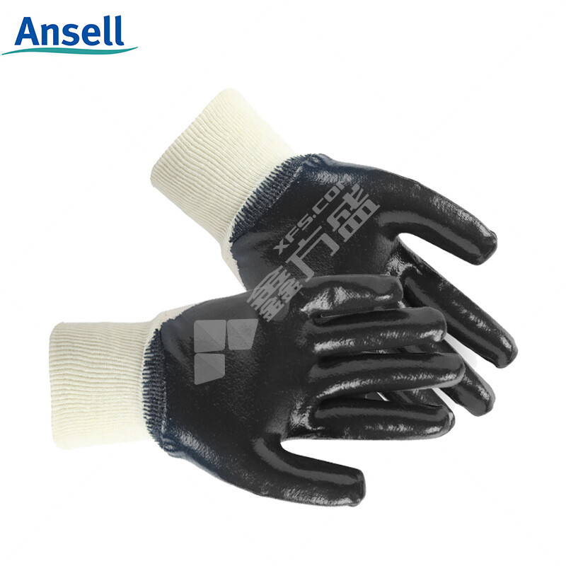 安思尔 48-920晴橡胶挂胶手套 8码 黑色 48-920