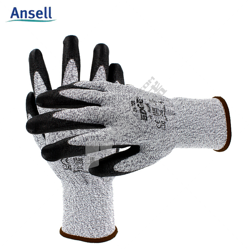 安思尔 PU涂层防割手套 7码 白衬黑胶 48701070/