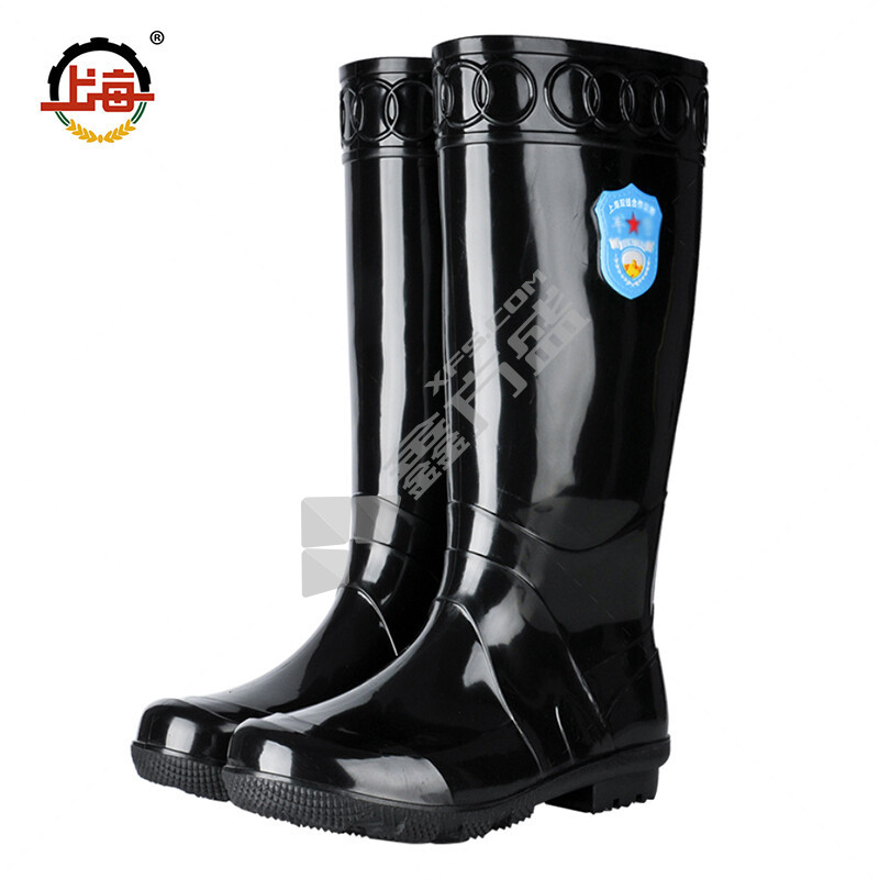 上海 130 高筒 男款PVC雨靴 42码 黑色