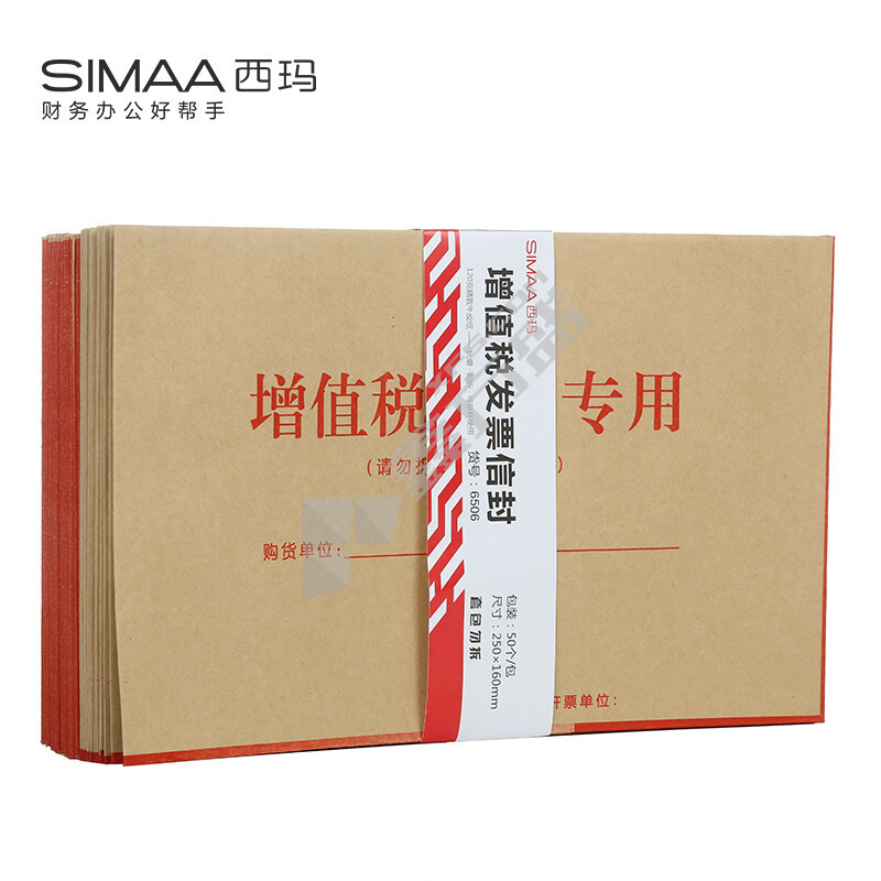 西玛 6506 增值税发票专用信封 250*160mm 米黄色 50个/包 6506