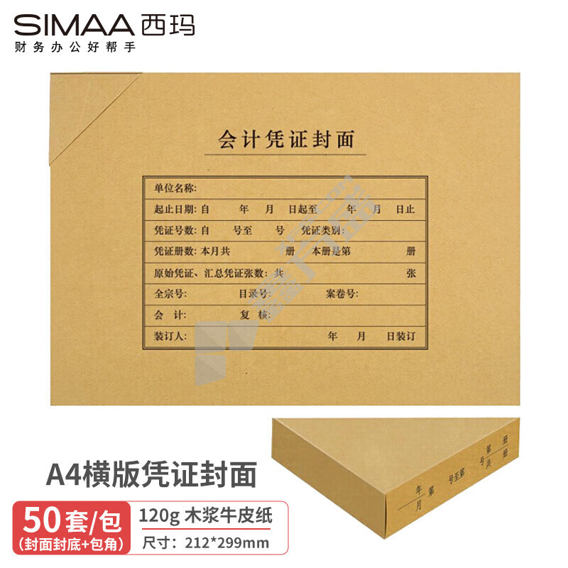 西玛 6760 A4横版会计记账凭证封皮 50套 299*212mm