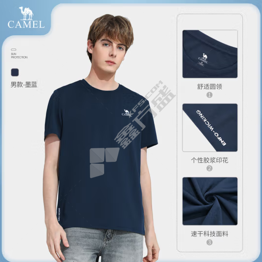 骆驼 男士春夏季舒爽轻薄透气简约百搭速干运动T恤短袖 L 藏青 V1S2VV934