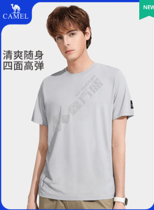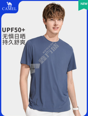 骆驼 男士春夏新款宽松圆领透气速干休闲短袖 S 月光蓝 AC82251001