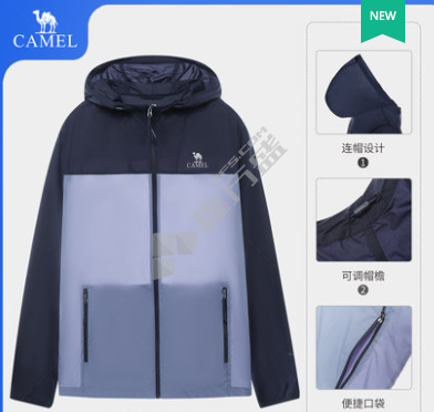 骆驼 男款春夏季舒适透气防闷连帽运动风衣 M 岩石蓝 V1S218277