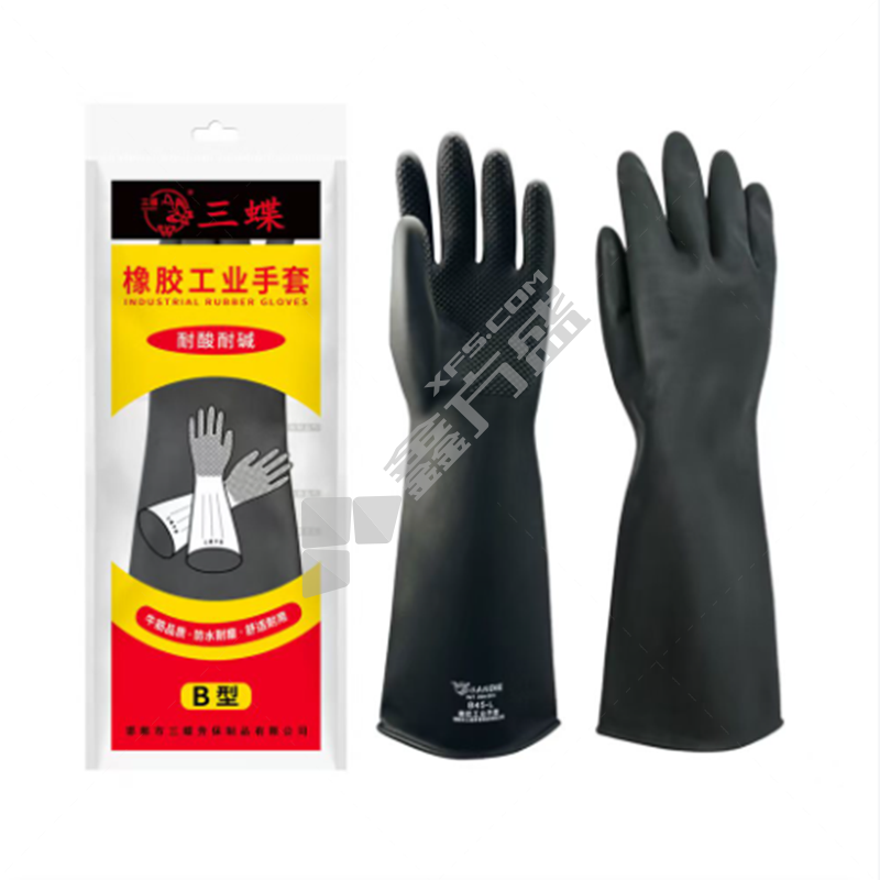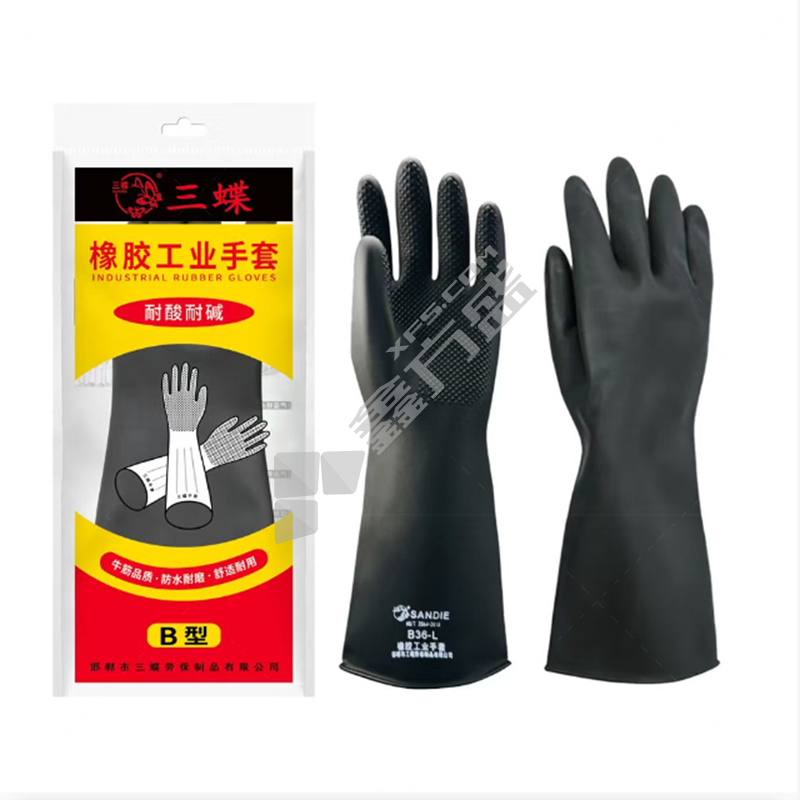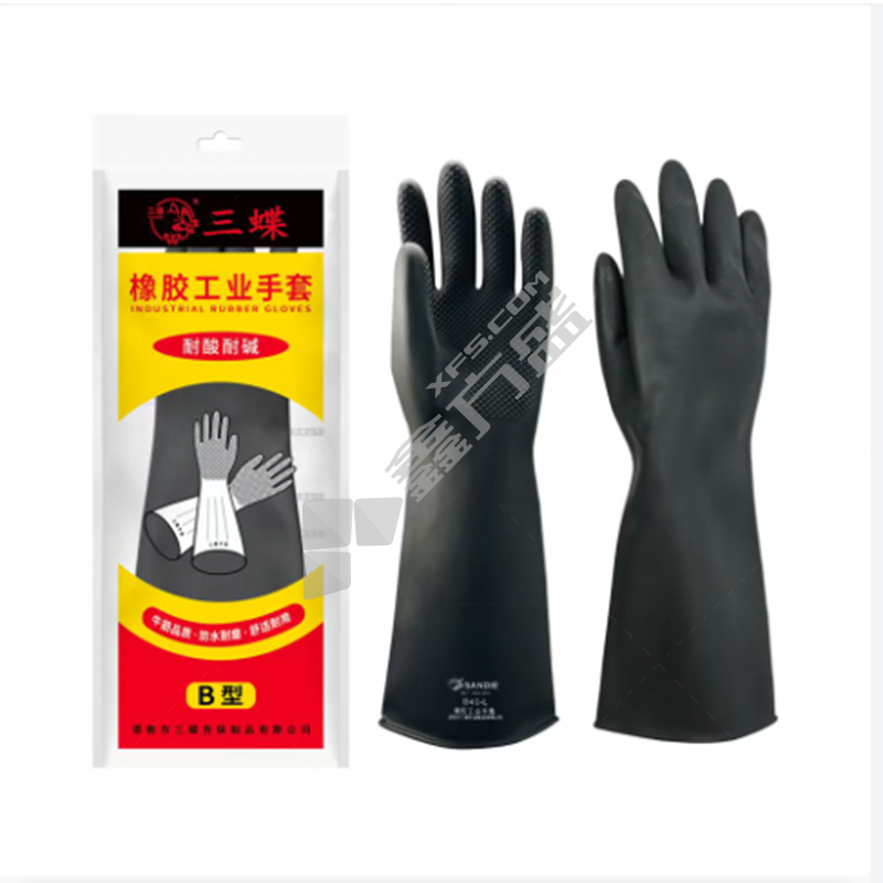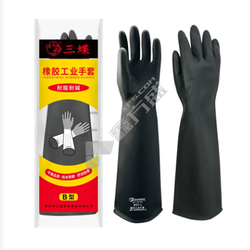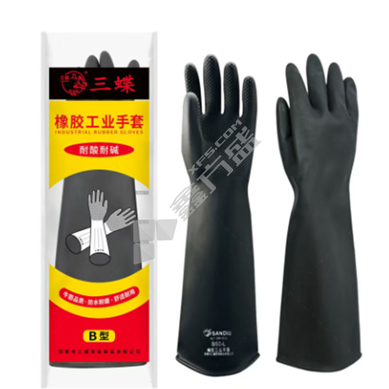 三蝶 A型有粉黄色工业乳胶耐酸碱手套 55CM 黄色 乳胶 A型