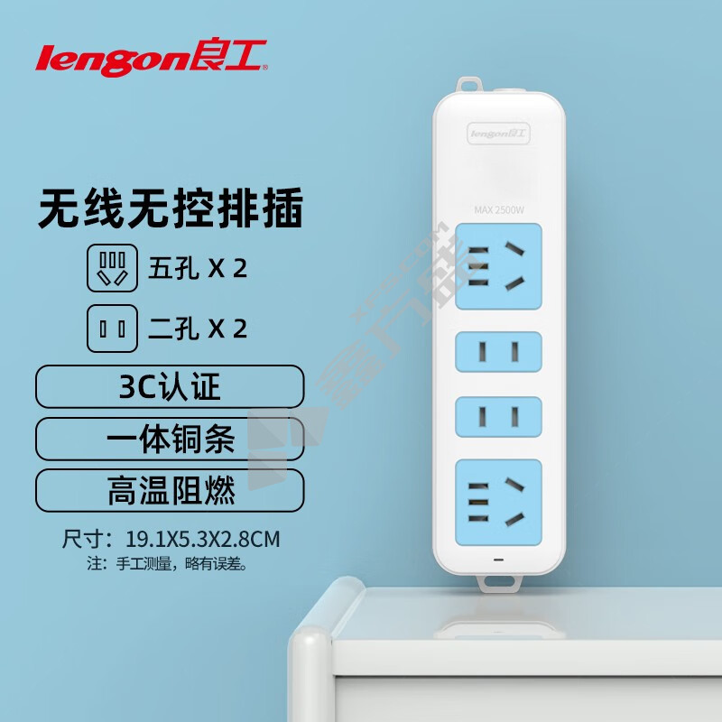 良工 2位五孔 插排 XD-T202 10A 无开关 无线 白蓝色