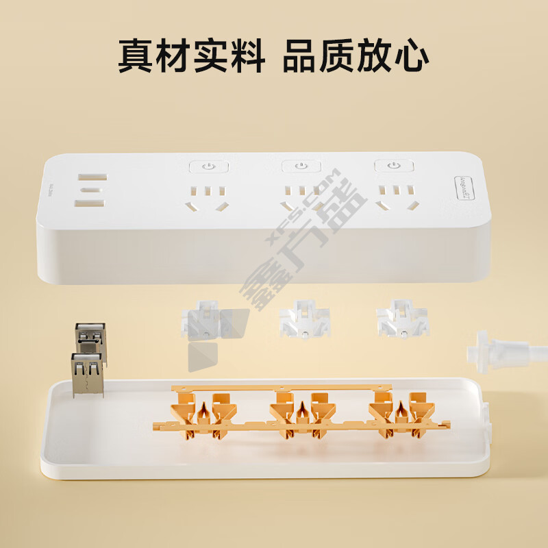 良工 3位五孔 插排 XD-U103 10A 总控开关 1.8m 白色 2个USB接口 12W 1个Type-c接口 12W