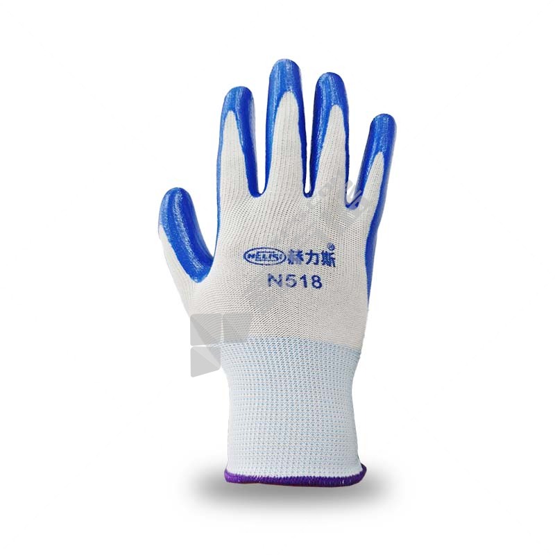 登升 13针涤纶丁腈光面防水橡胶耐磨手套 8.5号 白纱灰胶 #818
