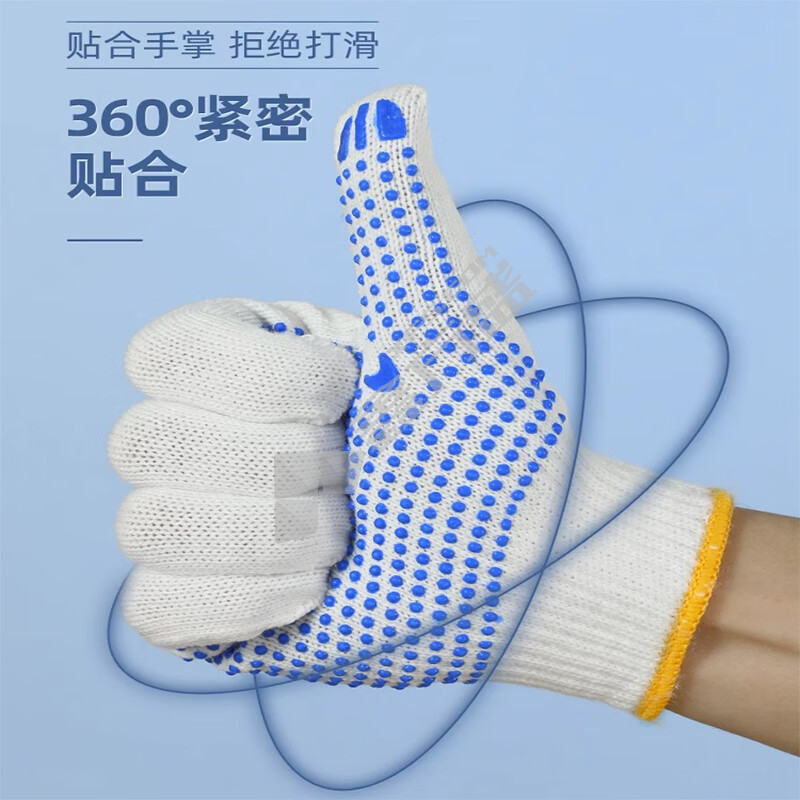 赫力斯 点胶防滑耐磨线手套 10针 600g 白线黄胶 12付/包