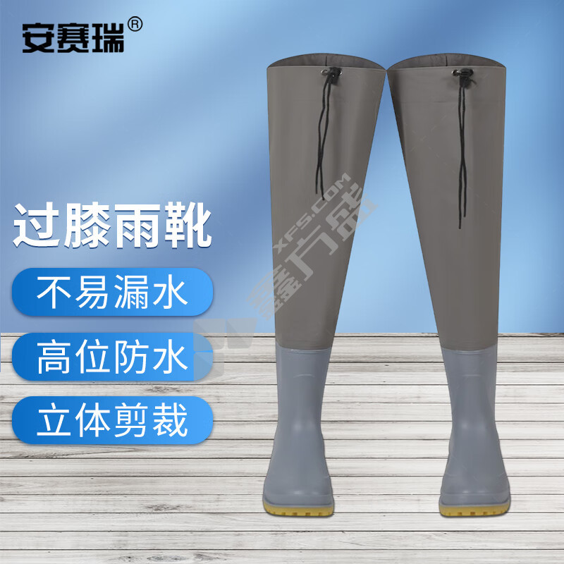 安赛瑞 插秧捕鱼水产作业过膝雨靴 L码 灰色 3G00321