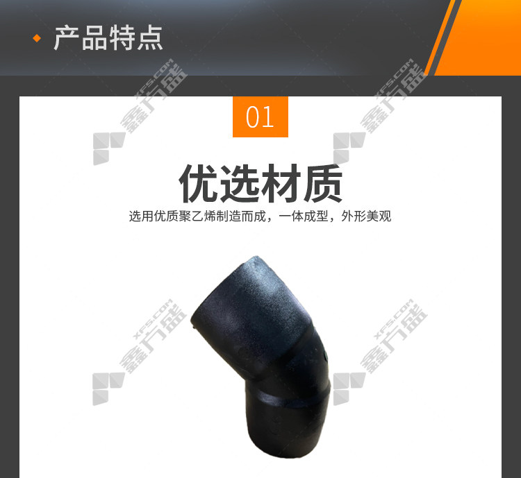 • 联塑 45°PE电熔给水弯头 160 1.6MPa 黑色