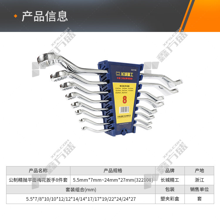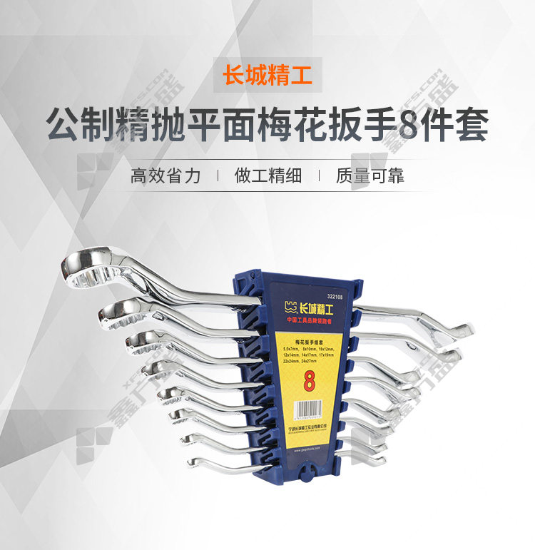 • 长城精工 公制精抛平面梅花扳手8件套 5.5*7~24*27mm 8件套 322108