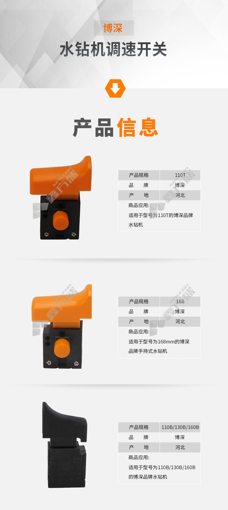 首页 首页 / [配件]博深BOSUN 水钻机调速开关 110T