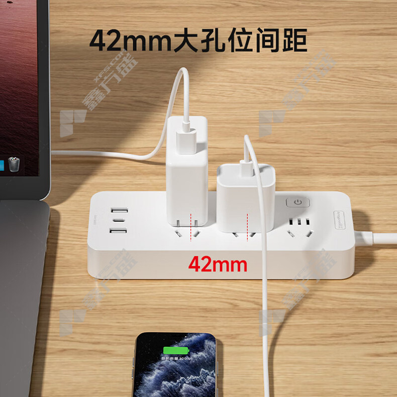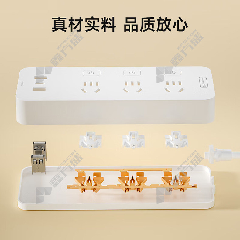 • 良工 3位五孔 插排 XD-U103 10A 总控开关 1.8m 白色 2个USB接口 12W 1个Type-c接口 12W