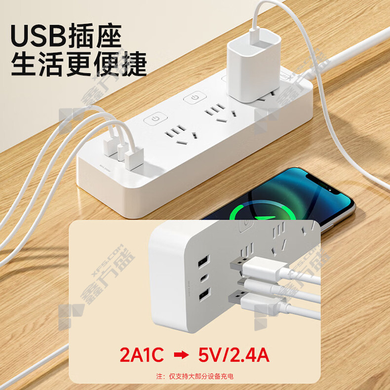 XD-U103/10A/总控开关/1.8m/白色/2个USB接口/12W/1个Type-c接口/12W