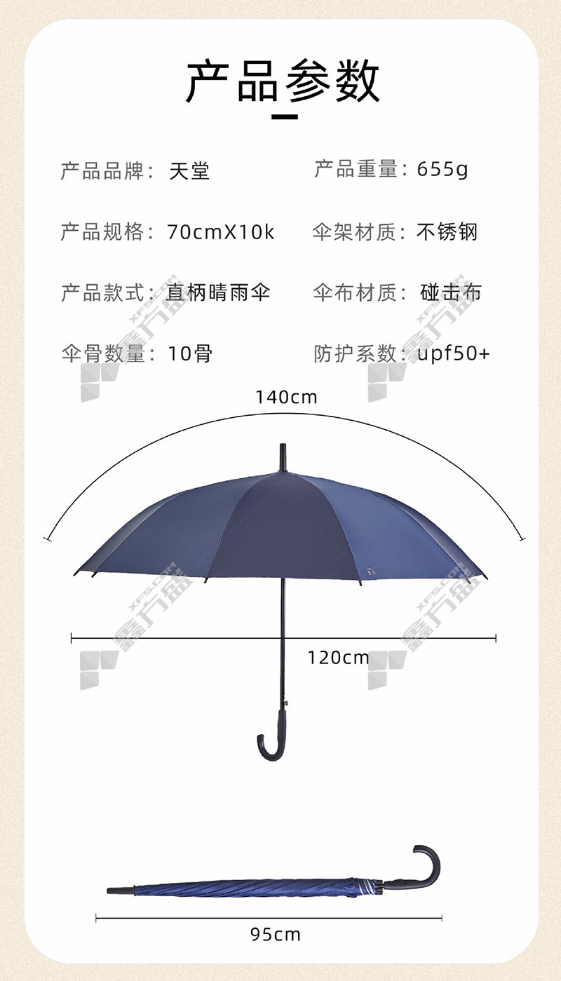 首页 首页 / 天堂 193E碰 晴雨伞 70cm 10骨 藏青色