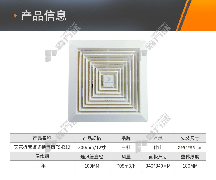 首页 首页 / 三社 FS-B12 天花管道换气扇 40W FS-B12 12寸