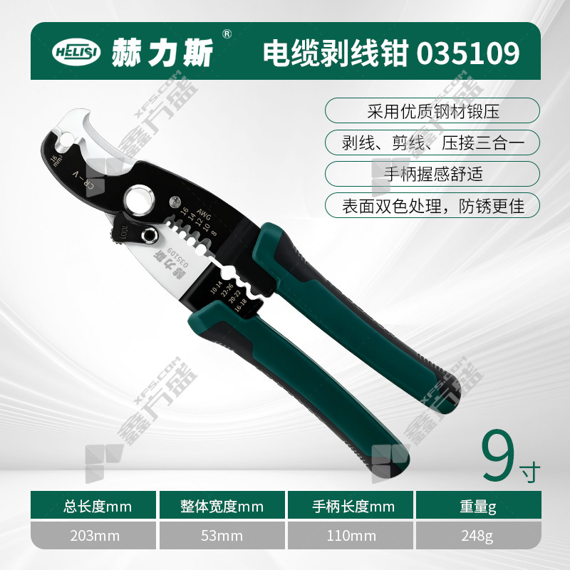 赫力斯 多功能电缆剥线钳 1.3-3.2-50mm2-9" 035109