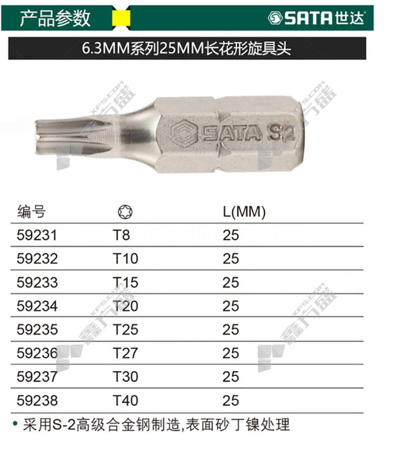 • 世达 25mm长花形旋具头5件套6.3mm系列 T30 59237