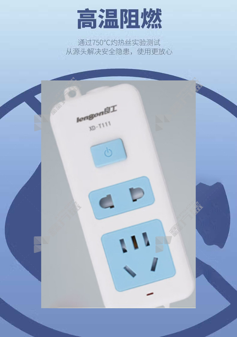 • 良工 T系列 2位(1+1)总控 插排 XD-T111 10A 有线 2.8m