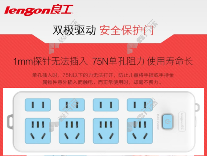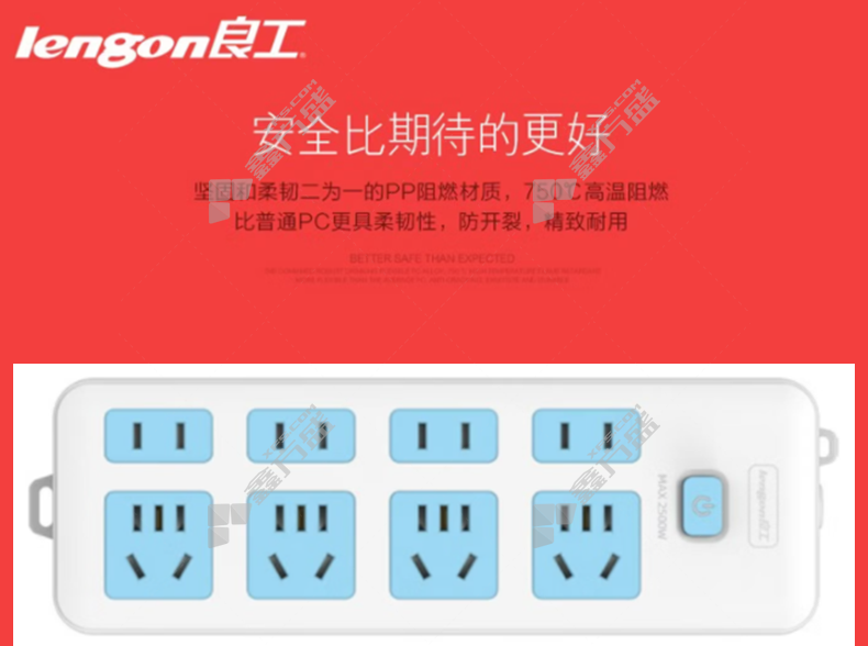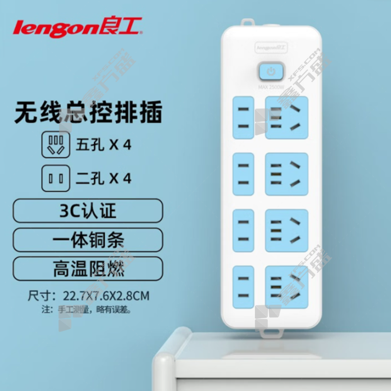 首页 首页 / 良工 4位五孔+4位两孔 插排 XD-T144 10A 总控开关 无线 白蓝色
