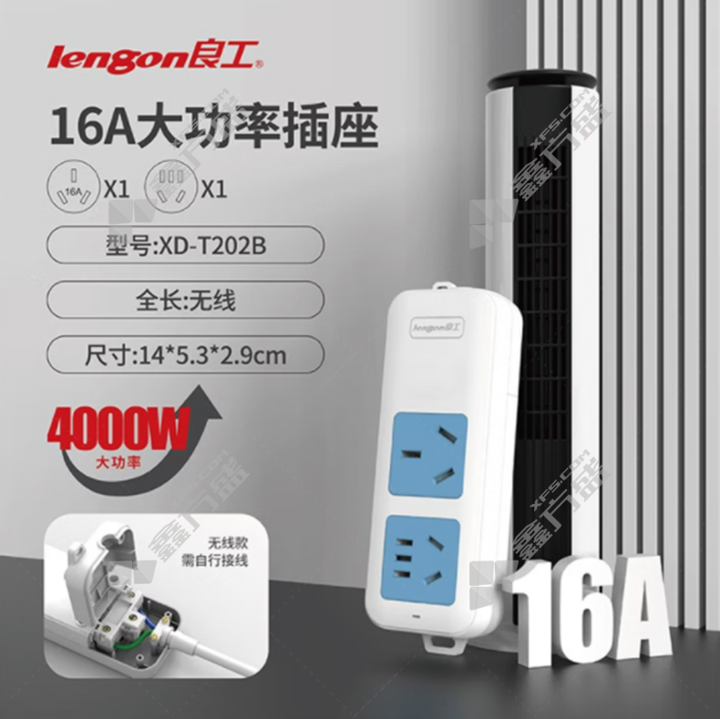 首页 首页 / 良工 1位五孔+1位三孔 插排 XD-T202B 16A 无开关 1.8m 白蓝色