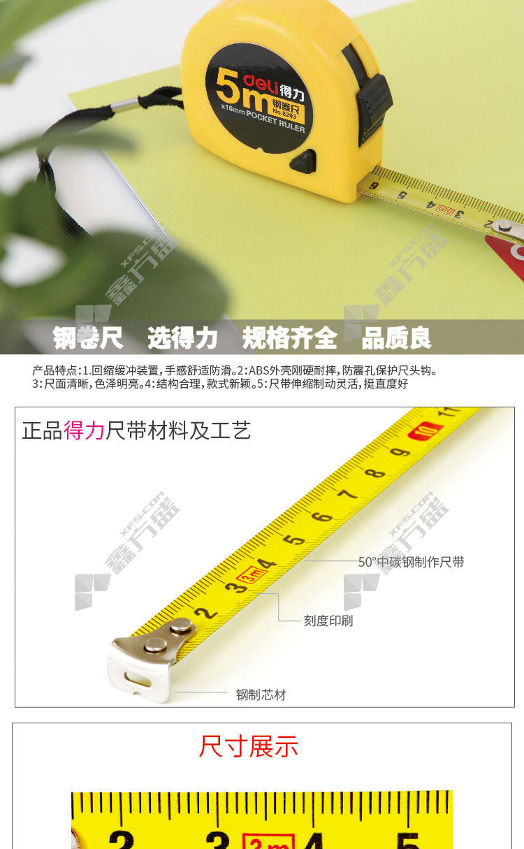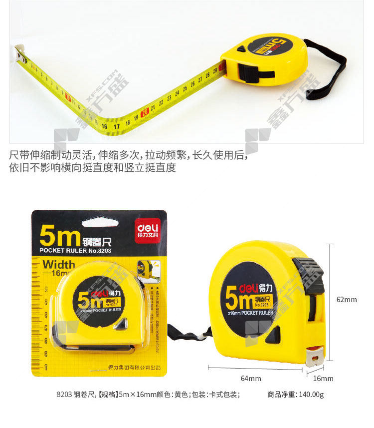 首页 首页 / 得力 钢卷尺 500cm 黄色