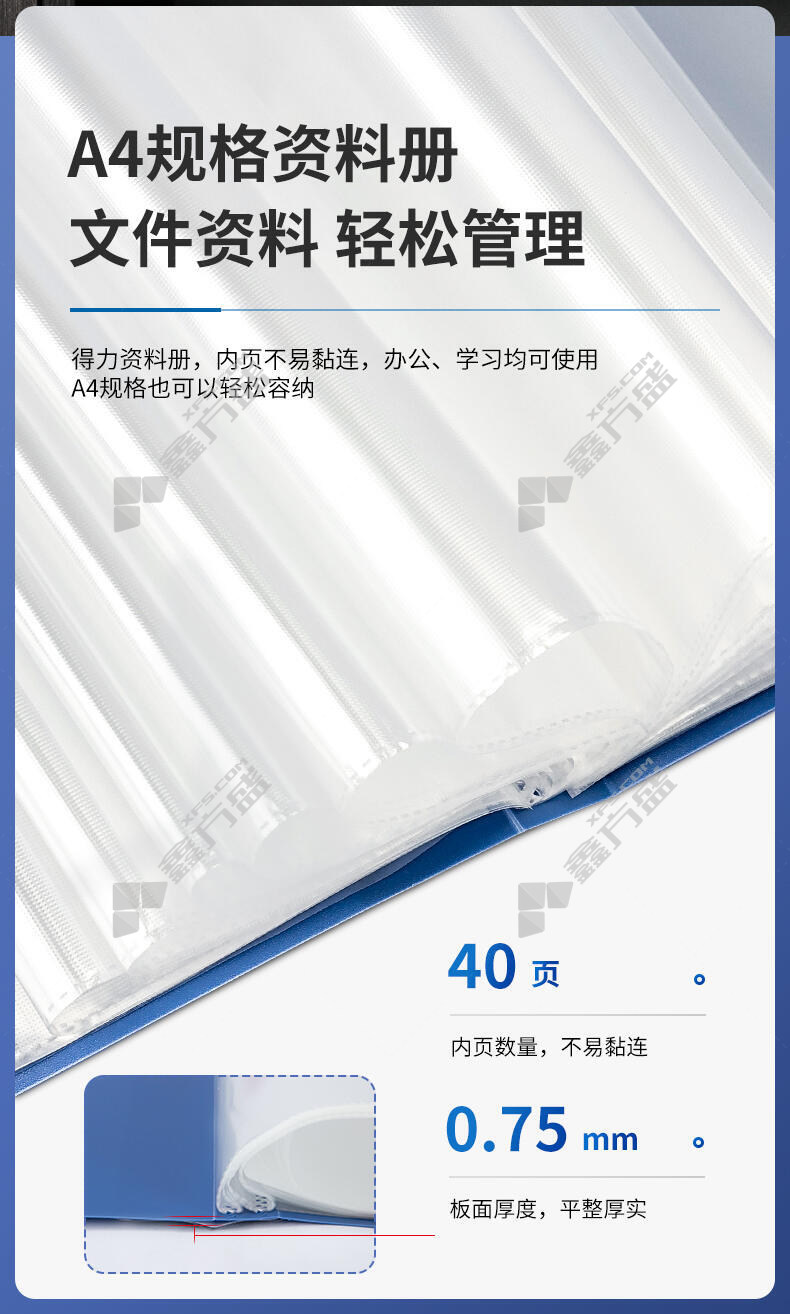 首页 首页 / 得力 5004 资料册 A4 蓝色 40页