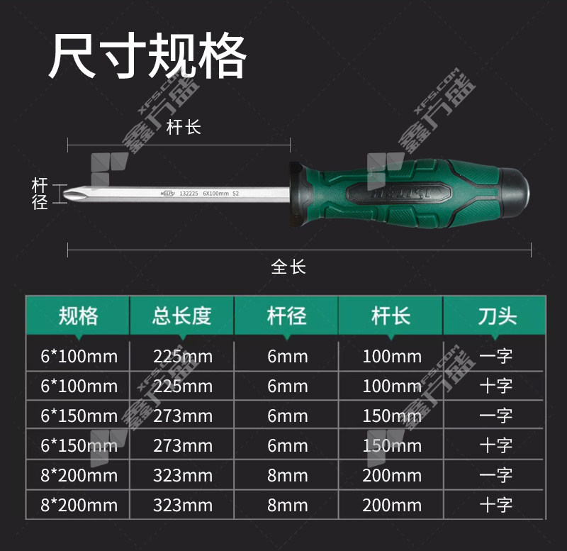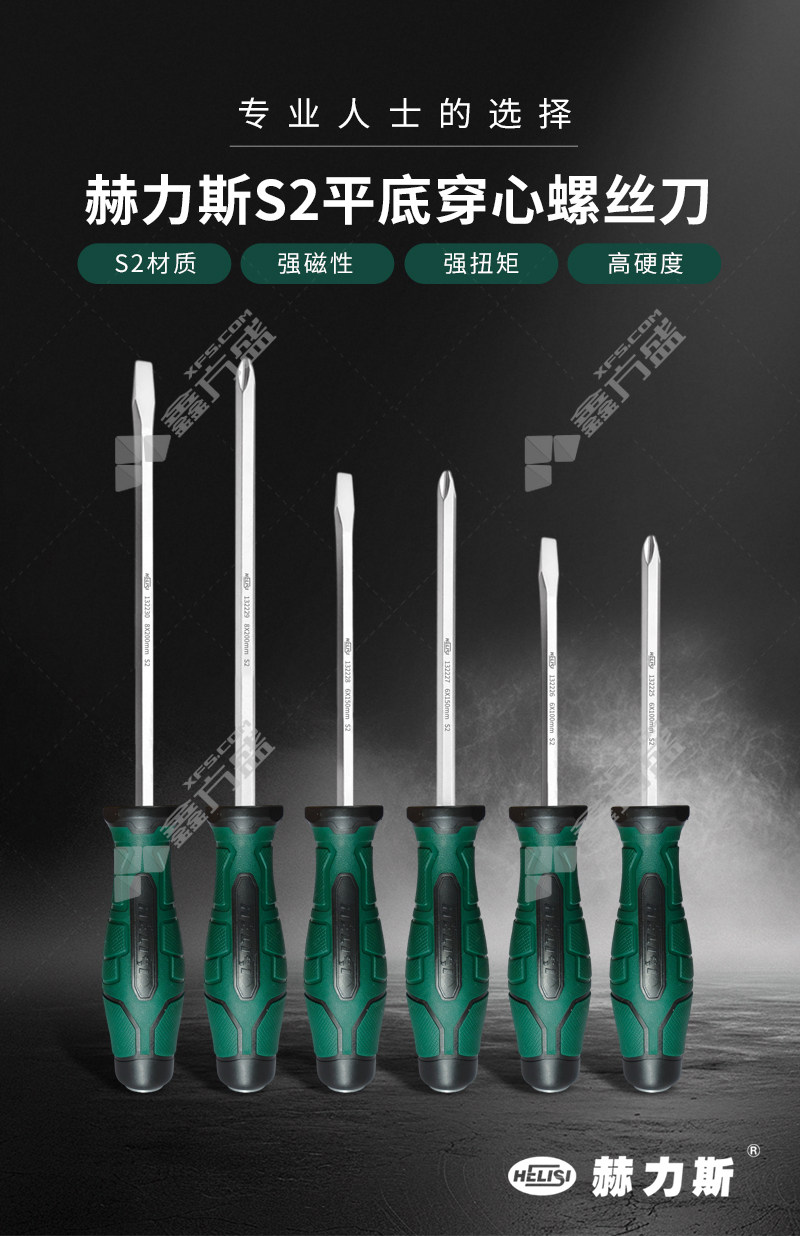• 赫力斯 S2平底穿心螺丝批 6*150mm+字 132227