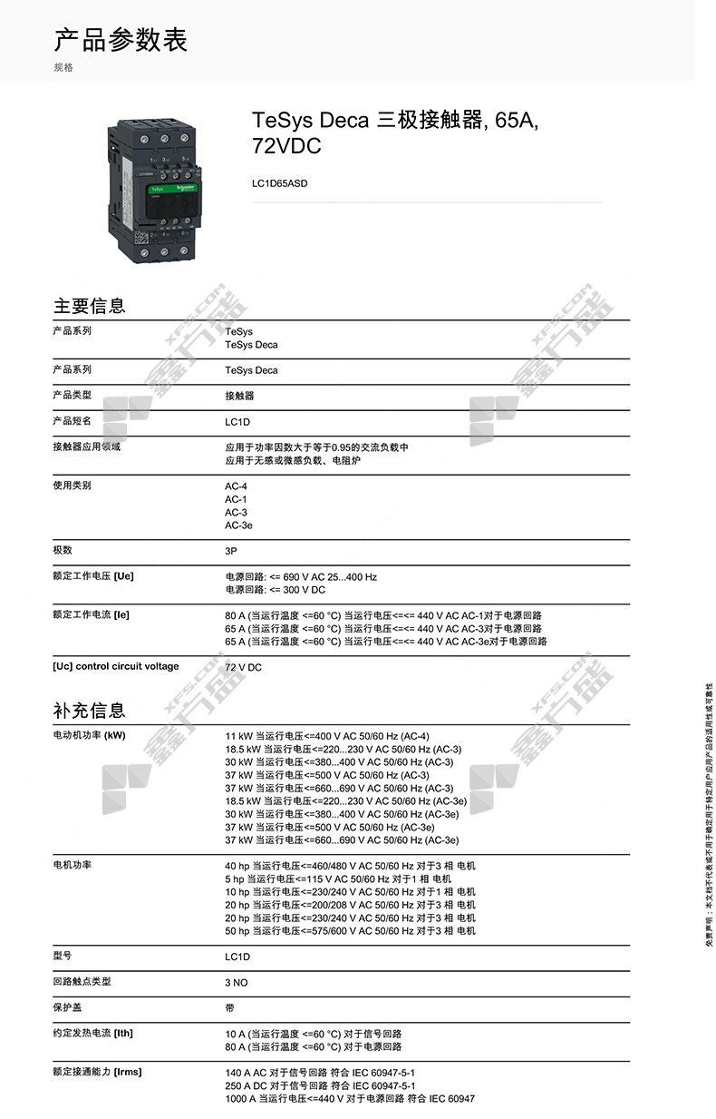 LC1D40A3M7 三极 40A 220V 50/60Hz 弹端