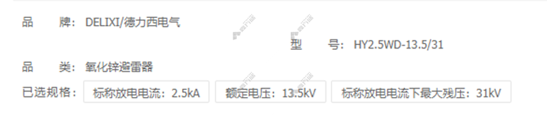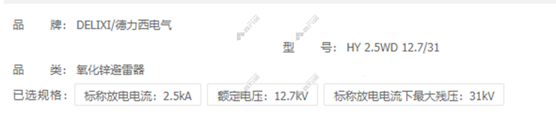 • 德力西DELIXI 避雷器HY2.5WD HY2.5WD-13.5/31