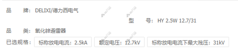 首页 首页 / 德力西DELIXI 避雷器HY2.5W HY 2.5W 12.7/31