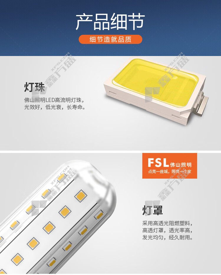 首页 首页 / 佛山照明 超亮系列 玉米灯炮 9w 调色 E27 220V 白色
