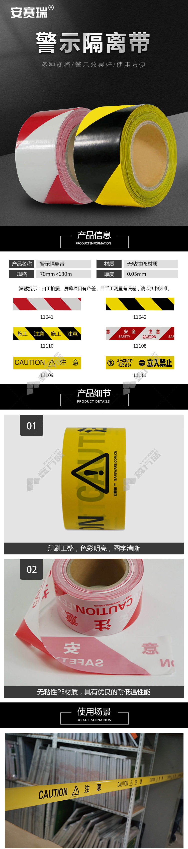 首页 首页 / 安赛瑞 11642 警示隔离带 7cm*130m 黄黑条纹 11642