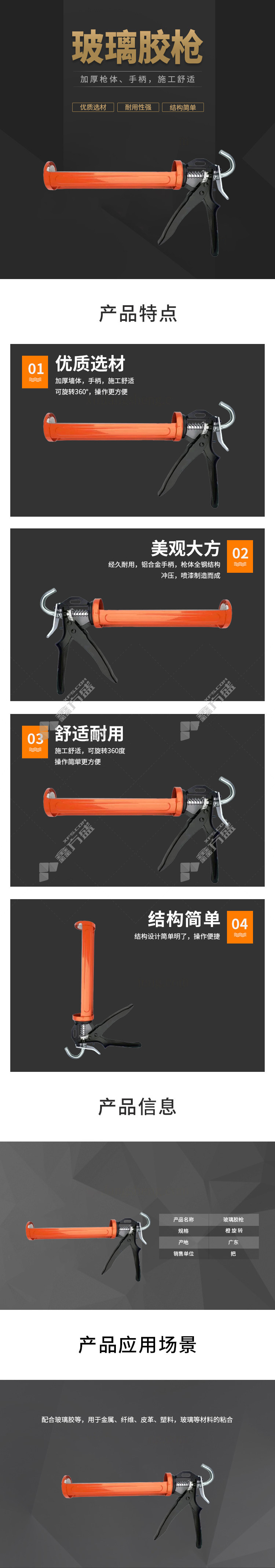 硬支玻璃胶枪 橙旋转