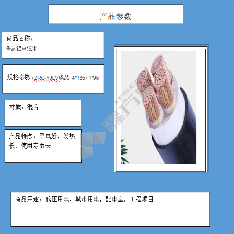 • #鲁昆铝电缆 ZRC-YJLV铝芯 4*185+1*95 0.6/1KV
