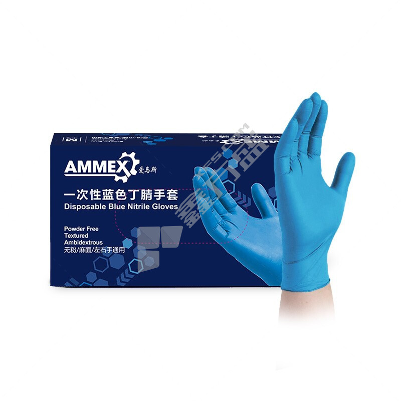 爱马斯 一次性丁腈手套APFNCHD 麻面 100只/盒 中号 蓝色 44100