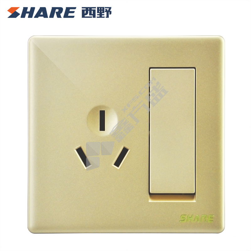 西野 三孔 有保护门 梦彩香槟金单控一开插座 86型 金色 10A 16A 220V